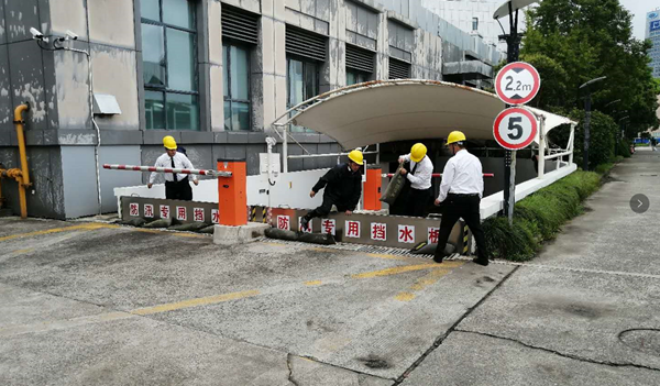 场景一:“商务中心2号楼地下空间防进水”。市防汛指挥部发布暴雨橙色预警信号,应急响应中心同步发布预警,物业公司通知商务中心监控室对地下车库采取防暴雨措施。商务中心监控室立即按照《防汛防台专项应急预案》要求,通知业主转挪地库车辆、安装防洪挡水板、摆放沙袋防水入侵、水泵设置为自动运行模式,增加巡逻频率。