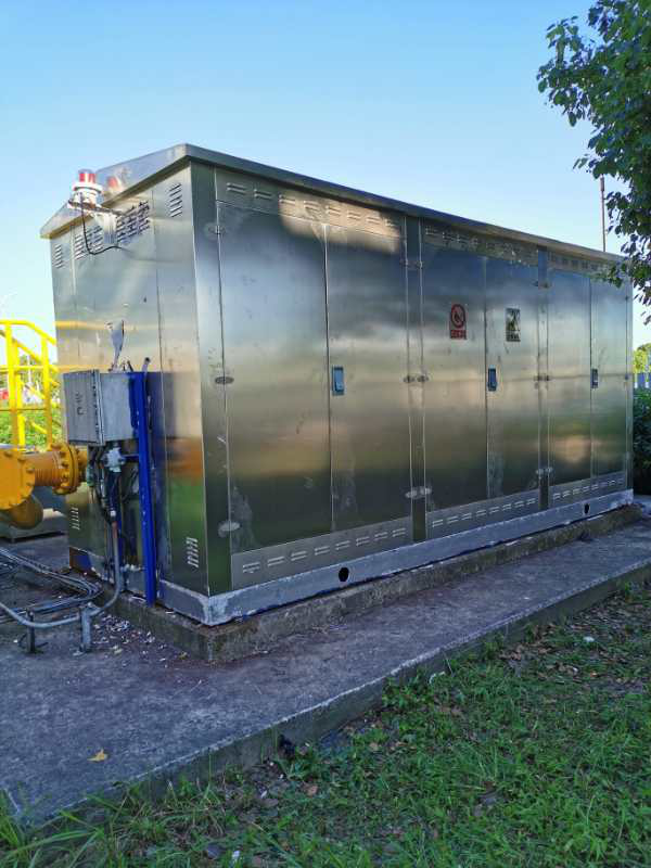 据了解,3家用户计量撬箱体普遍使用超10年,使用的材料已不能满足消防要求,且箱体出现锈蚀、破损等情况。为确保对3家用户的正常用气供应,物业公司决定实施计量撬不锈钢箱体更换项目任务。在8月初台风前期,物业公司工作人员一边对箱体采取临时加固措施,消除安全隐患;一边办理项目实施的相关手续。但由于用户入场施工手续较为繁琐,手续办结时已入伏。为了提前完成更换任务,消除安全隐患,作业人员连续三天在高温天气下作业,4座计量撬都为露天安装,基本无遮挡,受高温天气影响施工难度较大。在公司HSE工程师的全程监护下,在防暑降温措施落实到位前提下,现场作业人员交替上场,斗高温、抓进度、保质量,安全顺利地更换了四座计量撬不锈钢箱体。